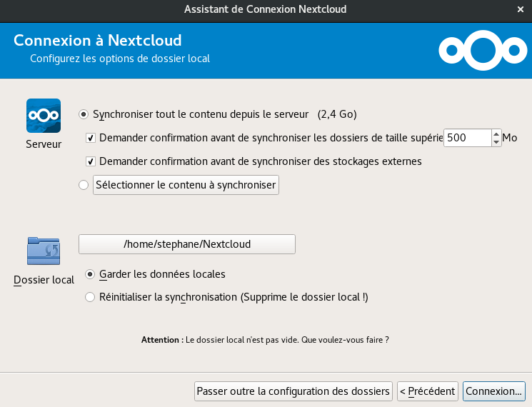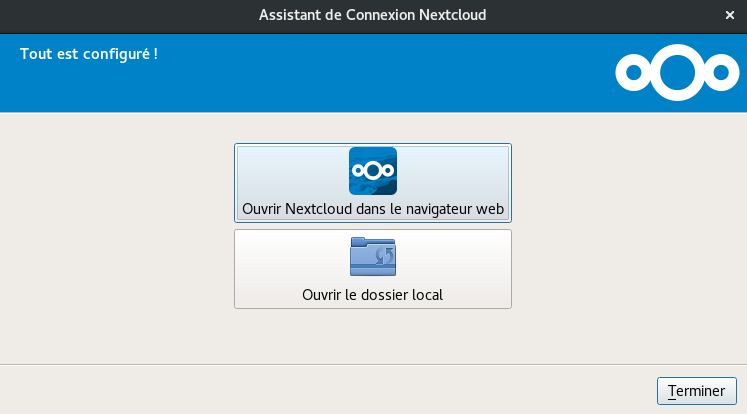 Passer ensuite au paramétrage du client Nextcloud ..