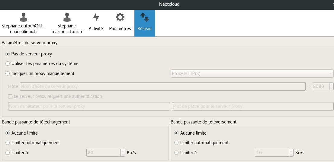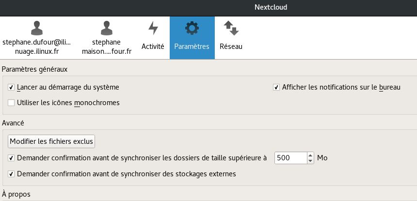 Paramétrage du client Nextcloud pour se connecter au nuage iLinux